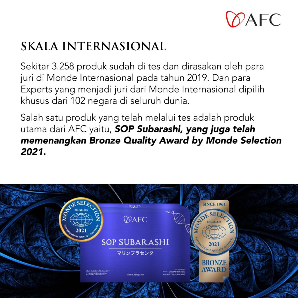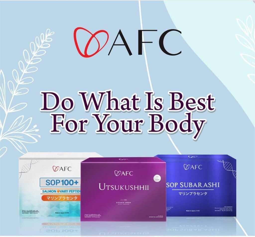 Memperkenalkan produk berkualitas premium dari AFC Japan – SOP Subarashi, SOP 100+ dan Utsukushhii yang sangat baik untuk kesehatan tubuh. InsyaAllah.
