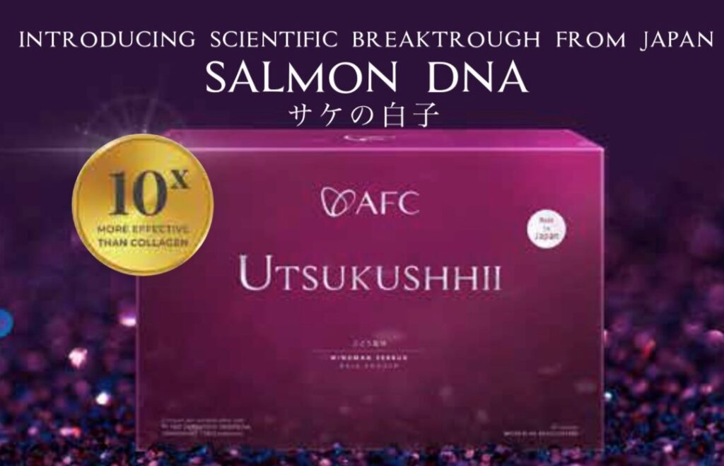 Utsukushhii adalah produk yang memiliki kandungan utama Salmon DNA dan delapan bahan aktif lainnya. Salmon DNA adalah protein “Salmon Milt DNA” dari ikan Oncorhynchus keta salmon jantan di Hokkaido.